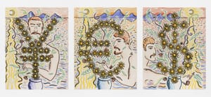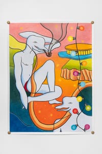 Apparently lighthearted and playful, Luís Lázaro Matos’ works actually investigate complex dynamics dealing with current social and philosophical constructions shaping contemporary forms of narrative. In his lush and colourful graphic figurations humor and drama coexist, opening up discourses which allude to both intimate and social dynamics, often dealing with queerness and desire. As metaphorical portraits of today’s communal aesthetic, imbued with his personal experiences as a digital native, Luís Lázaro Matos’ works reveal shared emotional images.