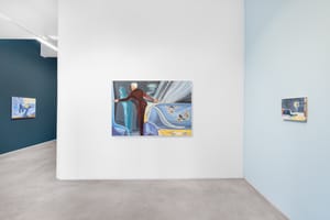 The montage is also emphasized by the alternation of meticulous, detail-oriented painting with larger areas where the color is more diluted and the gesture more informal and synthetic. In the canvases, the familiar and the unfamiliar coexist, creating a mysterious tension.