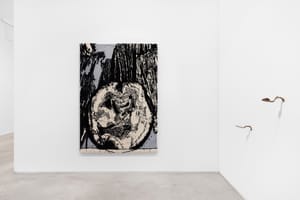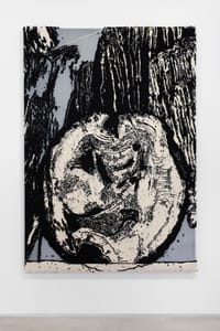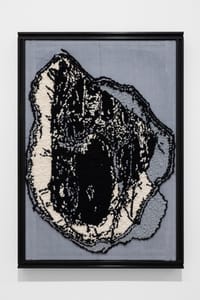 In this series of works created with wool on canvas, Beatriz Capitulé draws black and white landscapes whose aesthetics evoke a symbolist imagery in their graphic dimension. The subjects, first drawn on paper, become almost entirely abstract in their transposition onto canvas, onto which the wool is applied using a carpet-weaving gun. As if each stroke were a pixel, an image takes shape on the surface, the result of a gestural, almost performative operation that also contemplates error, the impossibility of correcting the stroke.